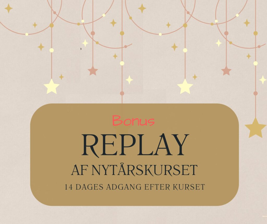 Efter selve nytårskurset, der foregår live med mig på Zoom, får du også adgang til optagelsen i 14 dage. En ekstra mulighed for at gense kurset, lytte til det igen i ro og mag på en gåtur eller fordybe dig, hvis dele af kurset kalder på mere tid eller eftertanke.